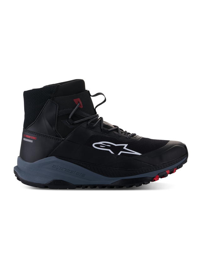 Integrated Alpinestars transversal protection frame (TPF) technology using forefoot front transversal metal bar, TPU shanks and a PU midsole for unrivalled transversal protection while offering a running shoe walking comfort and roll.