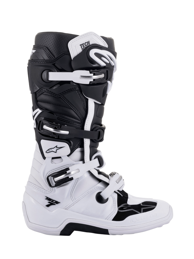 Evoluzione e rivoluzione per lo stivale Tech 7, creato da nuovi materiali e con tecnologie innovative per migliorare le prestazioni grazie a maggiori doti di leggerezza ed anatomia. Il Tech 7, certificato CE, migliora stabilità e flessibilità grazie al perno biomeccanico garantendo eccellente protezione alla caviglia. La struttura è studiata per un'interazione ottimizzata con cambio e comandi della moto; la chiusura è facile e precisa grazie a nuovi ganci.