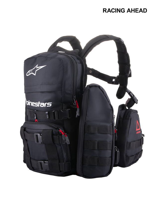 Il design del Techdura Tactical Pack consente al pilota di centralizzare e distribuire il peso dello zaino più vicino e intorno al corpo del pilota per una migliore distribuzione del peso e comfort per una maggiore resistenza alla guida, una fatica muscolare complessiva ridotta e una mobilità libera sulla moto. Per ulteriore distribuzione e gestione del peso, lo zaino ergonomico dispone sia di una grande fibbia addominale che di una fibbia magnetica al petto, sicura e facile da aprire e chiudere, offrendo un'ampia gamma di regolazioni. Il Techdura Tactical Pack presenta passanti MOLLE per accessori utente come radio o altri sistemi di comunicazione. Internamente, lo zaino dispone di scomparti multipli appositamente progettati per organizzare e trasportare attrezzi, zip ties, cucchiai per pneumatici, toppe, telefono e qualsiasi altra necessità richiesta mentre si è in pista.