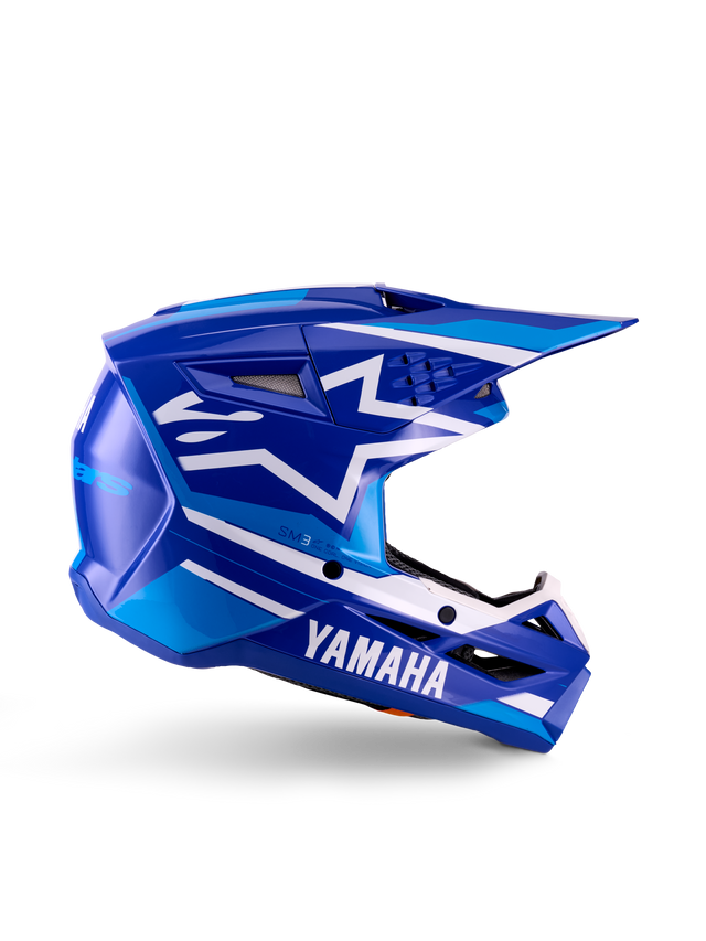 Casco Yamaha S-M3 Youth Helmet ECE06, casco da motocross per ragazzi, blu e bianco, design aerodinamico con visiera lunga, ventilazione integrata, finitura lucida, omologato ECE06